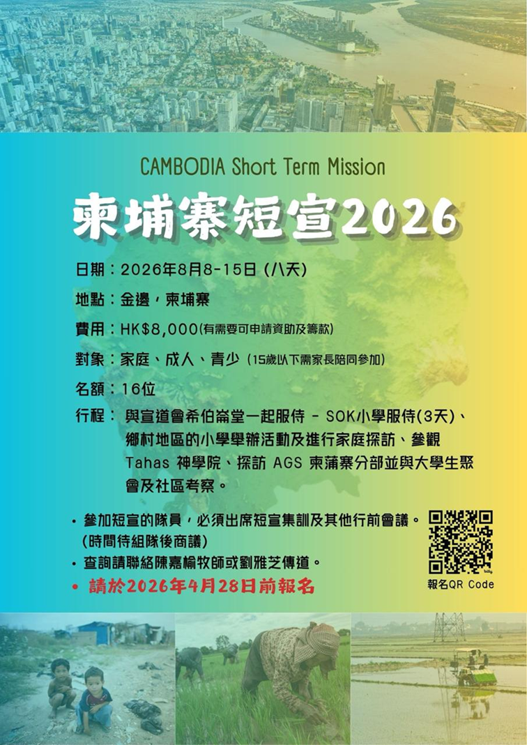 一堂 • 兩址 九龍塘基址蝴蝶谷基址 2025全年主題 扎根於神 同見新異象栽於本地 服侍今世代 教會活動最新資訊 按此報名(主日學課程) 按此報名(馬可福音信仰探討班) 按此報名(家長班) 參與事奉 立即報名了解更多程式內容 了解更多程式內容 日程編排報名詳程 教會活動最新資訊 了解更多程式內容 參與事奉 立即報名 了解更多程式內容 【颱風/惡劣天氣安排指引】 《塘宣家訊》6月號 塘宣八十週年堂慶活動 主日時段(上午9:15分-10:30分)課程包括:〈聖經研讀循環班〉及〈《撒母耳記上》、《歌羅西書》、《撒母耳記下》研讀班〉,歡迎肢體報名參加 [報名截止日期:7 月18日(主日)報名連結「詳情可按以下連結了解更多」新一季主日學課程(2021年7至9月) 下載《啟發課程》參加表格